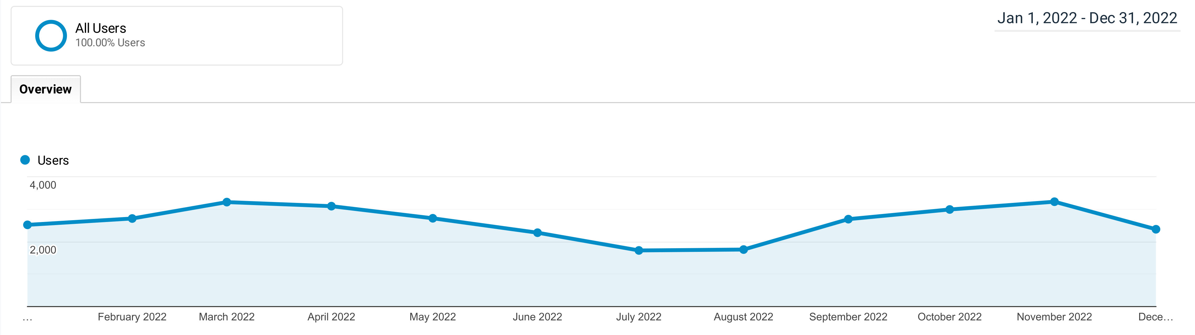 Fig. 1 - Numero di pagine viste e di utenti nel 2022 su base mensile